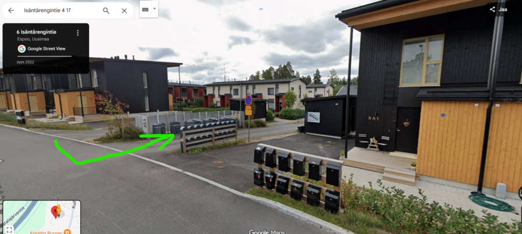 Aja nuolista sisään ja seuraa asfaltin ajotietä pitkin – punainen, yksikerroksinen talo on suoraan edessäsi. Talon vieressä on ilmainen pysäköintipaikka.